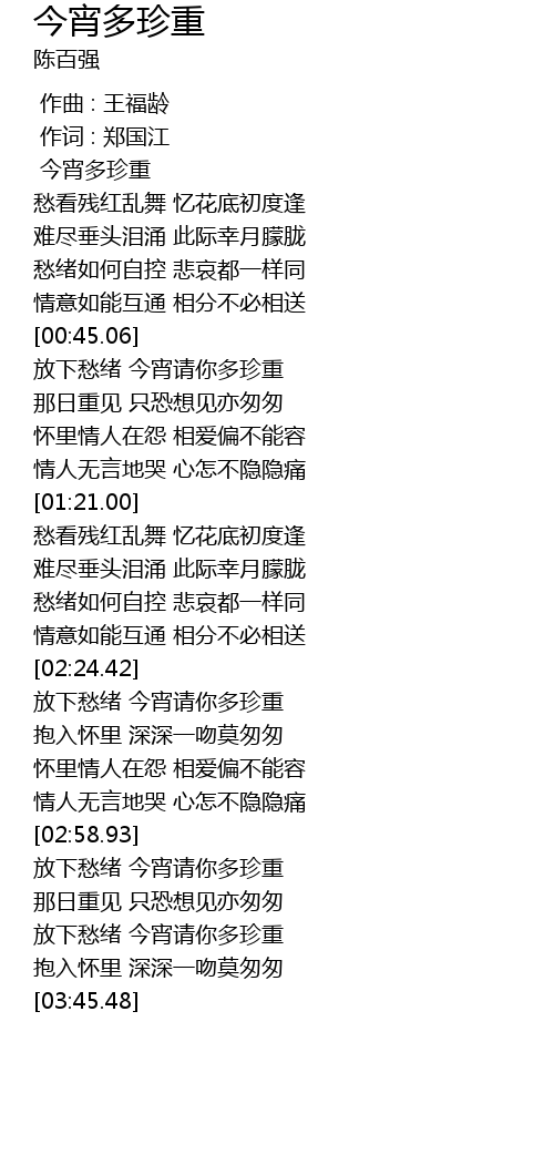 | [03:31.02] | 放下愁绪 今宵请你多珍重 |