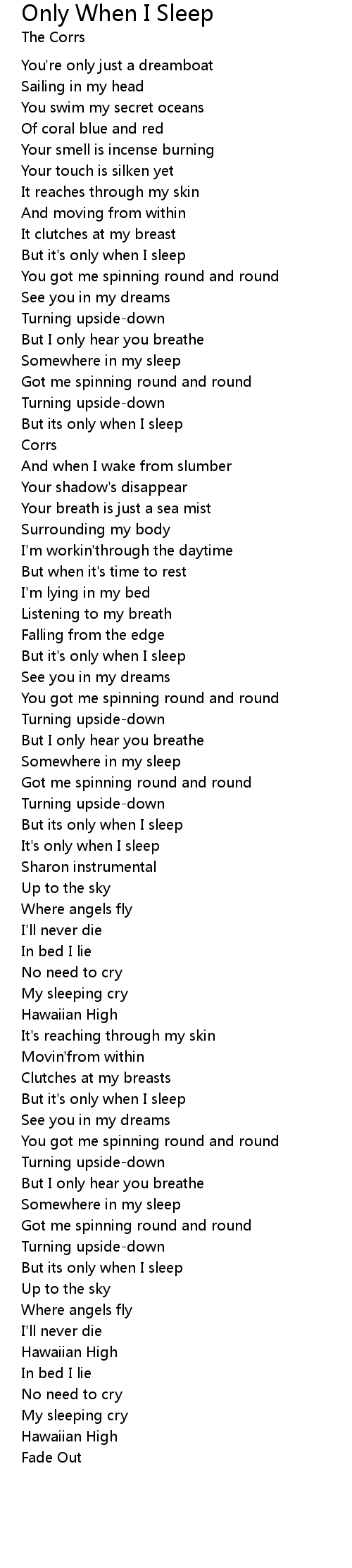 It's only when I sleep |