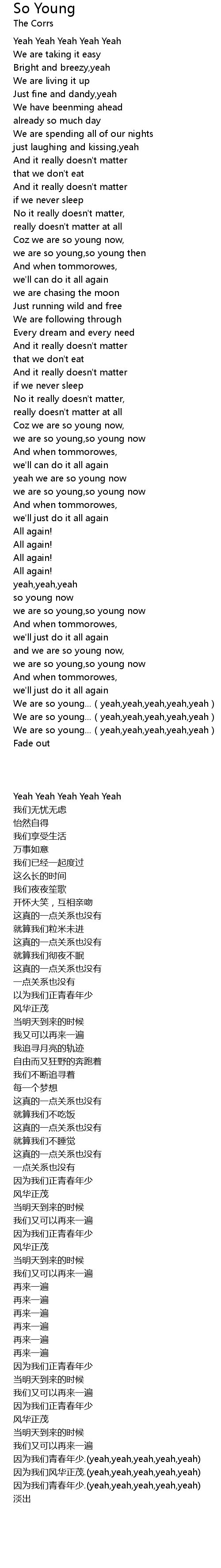 | [03:53.779] | We are so young...(yeah,yeah,yeah,yeah,yeah) |