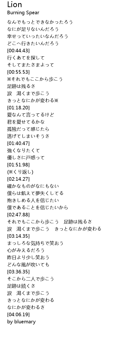 | [03:03.40] | 涙 渇くまで歩こう きっとなにかが変わる |