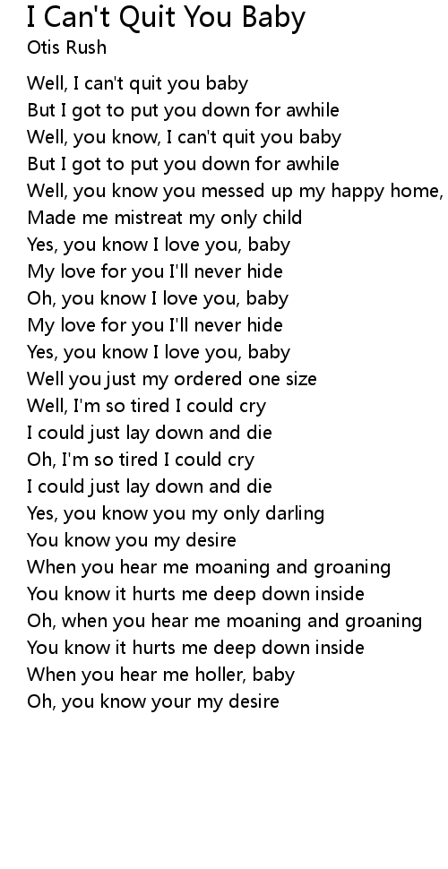 Well, you know, I can't quit you baby |