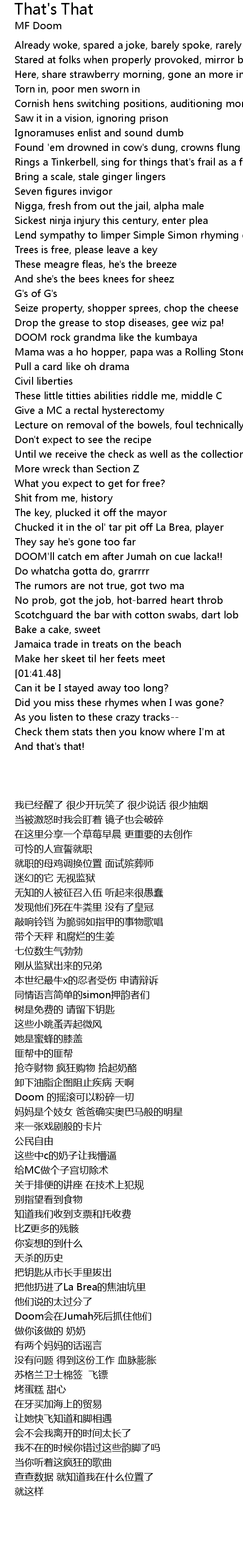 | [00:48.61] | DOOM rock grandma like the kumbaya |
