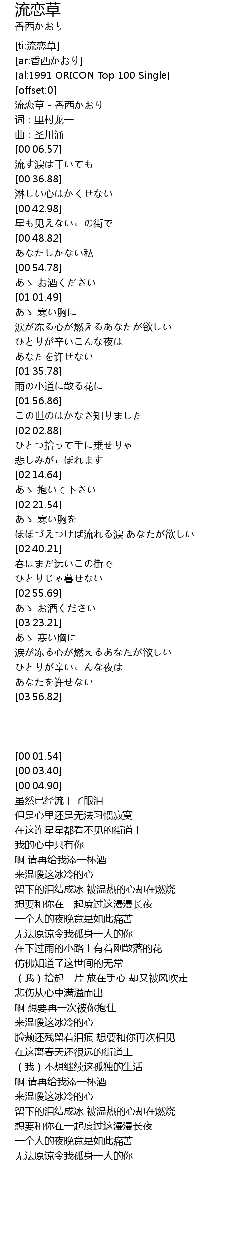 | [00:01.54] | 流恋草 - 香西かおり |