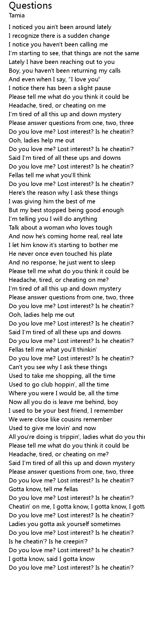 Cheatin' on me, I gotta know, I gotta know, I gotta know |