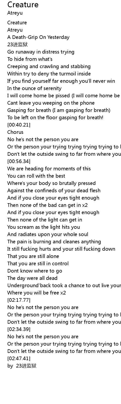 | [00:31.59] | Gasping for breath (I am gasping for breath) |
