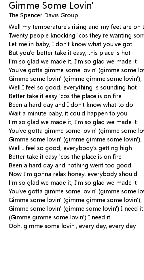 Gimme some lovin' (gimme some lovin') I need it |
