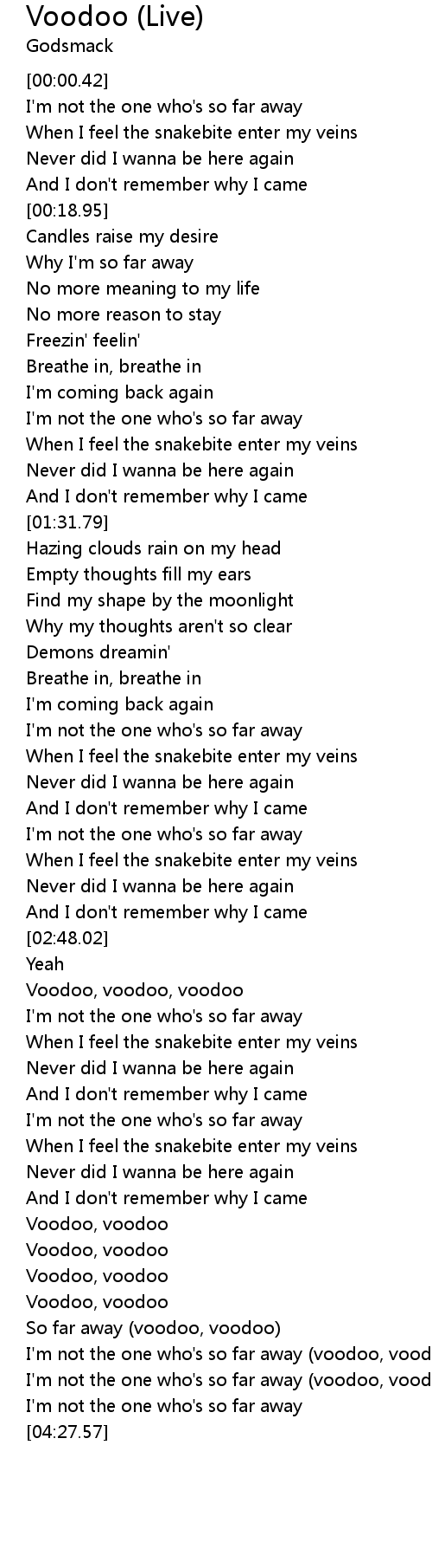 | [04:08.72] | So far away (voodoo, voodoo) |