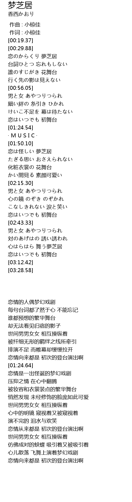 | [00:32.61] | 恋のからくり 夢芝居 |