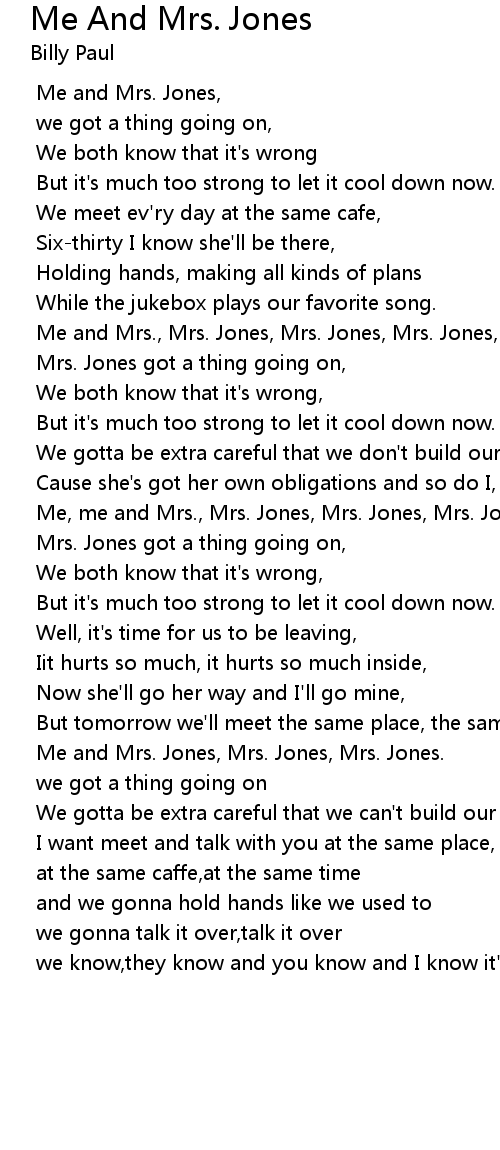 Me and Mrs., Mrs. Jones, Mrs. Jones, Mrs. Jones, |