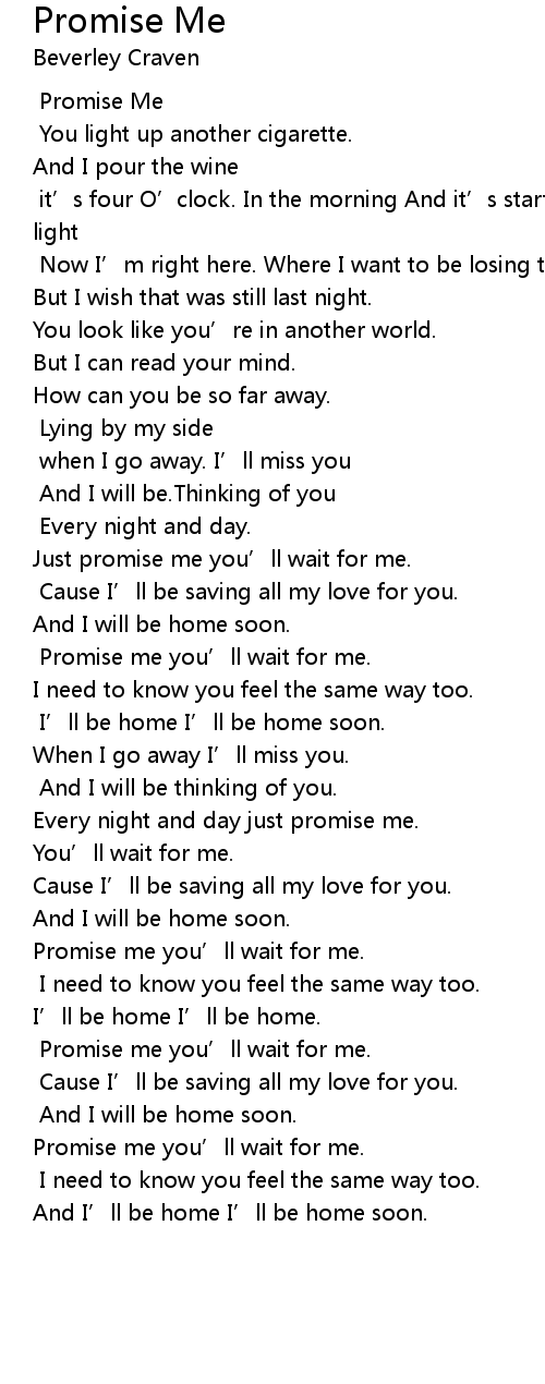 | [01:19.56] | Just promise me you' ll wait for me. |