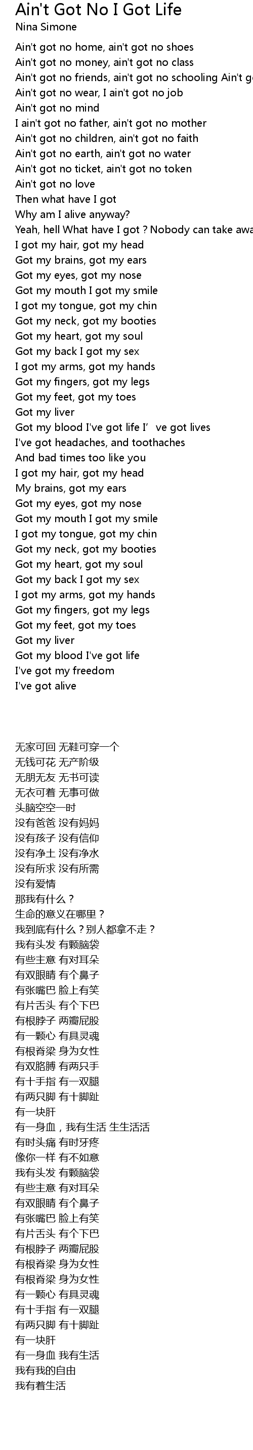 | Song | Ain't Got No I Got Life |