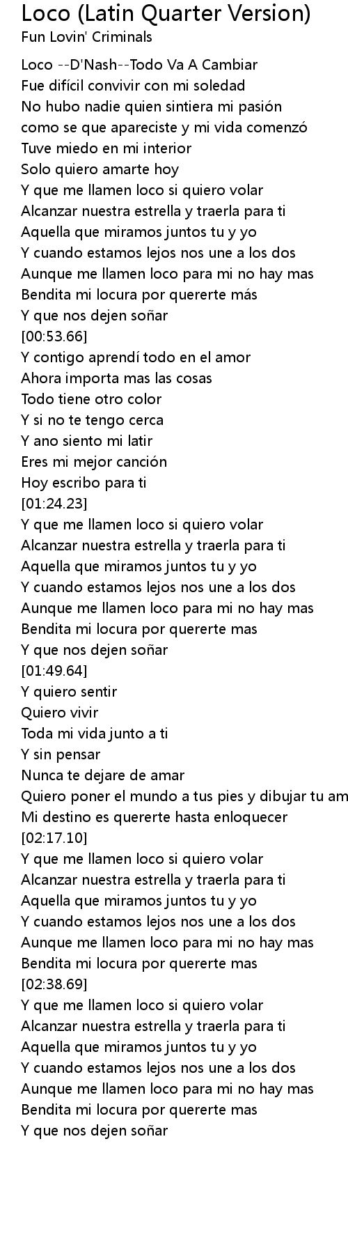 | [00:00.00] | Loco --D'Nash--Todo Va A Cambiar |