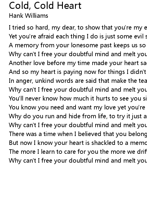 Why can't I free your doubtful mind and melt your cold, cold heart |