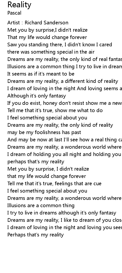 | Dreams are my reality, a wonderous world where I like to be | |