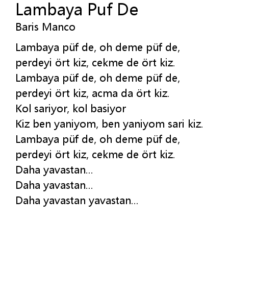 | Kiz ben yaniyom, ben yaniyom sari kiz. | |