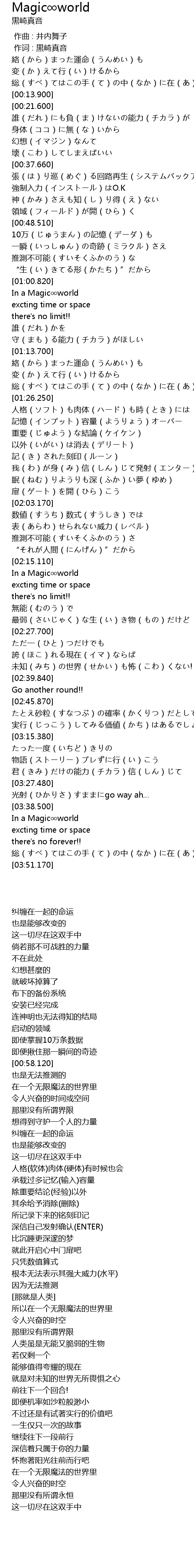 | [03:38.710] | In a Magic∞world |