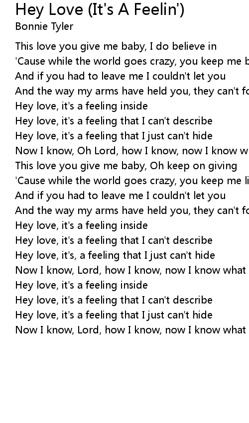 Hey love, it's, a feeling that I just can't hide |