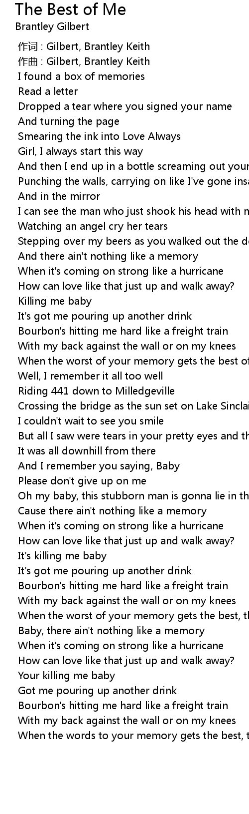 | [02:47.248] | When the worst of your memory gets the best, the best of me |