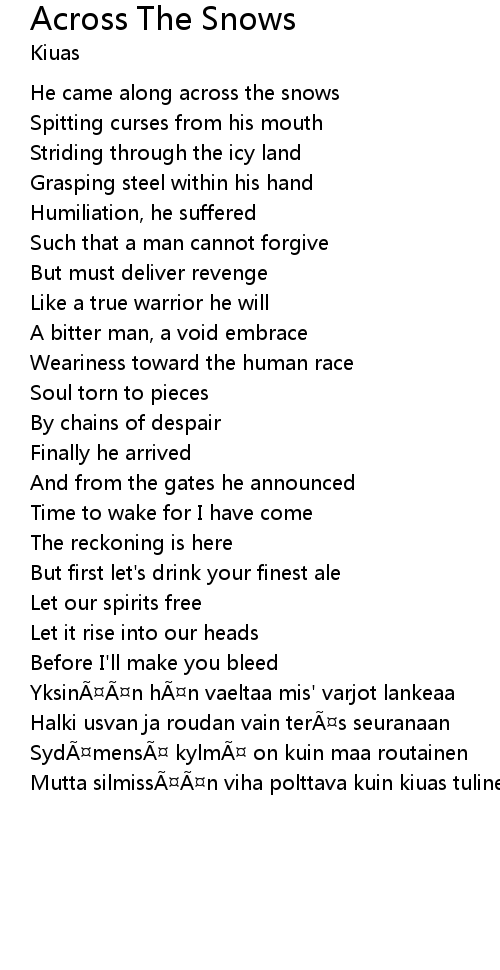 | Halki usvan ja roudan vain teräs seuranaan | |