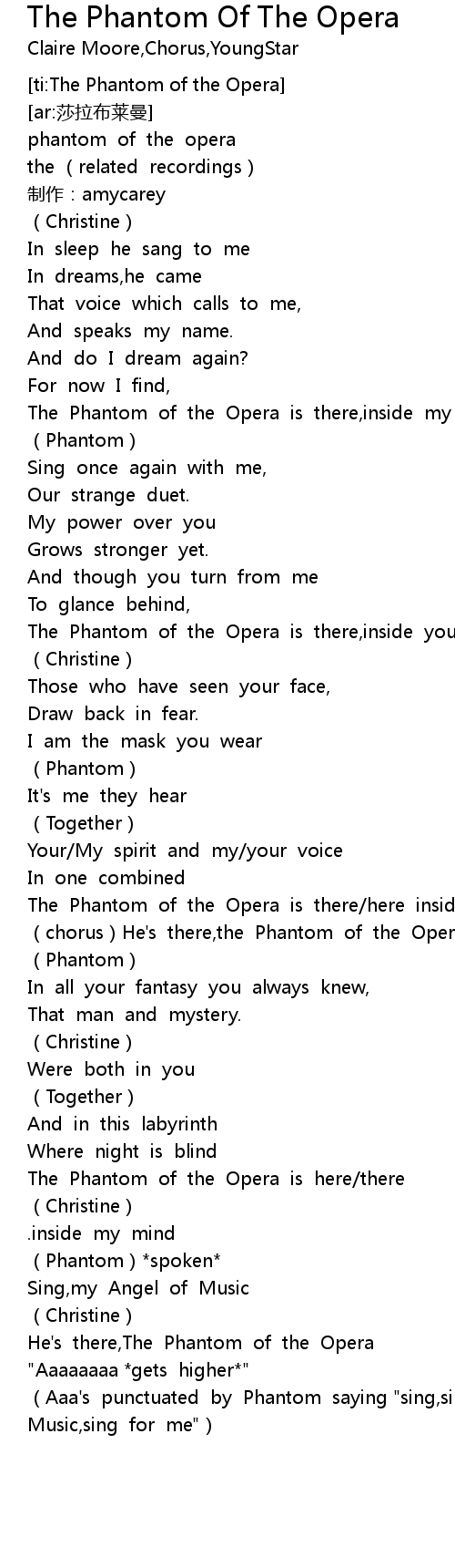 | [02:11.436] | The Phantom of the Opera is there/here inside my/your mind. |