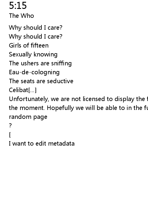 | Unfortunately, we are not licensed to display the full lyrics for this song at the moment. Hopefully we will be able to in the future. Until then, how about a | |