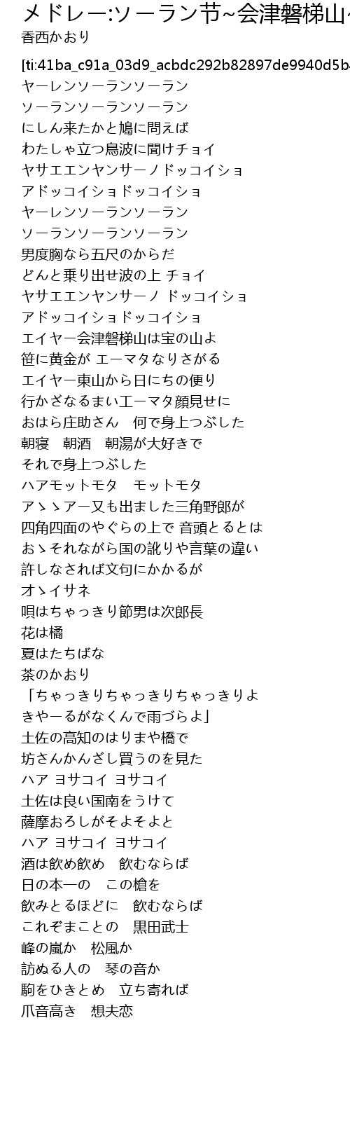 | [00:14.39] | ヤーレンソーランソーラン ソーランソーランソーラン |