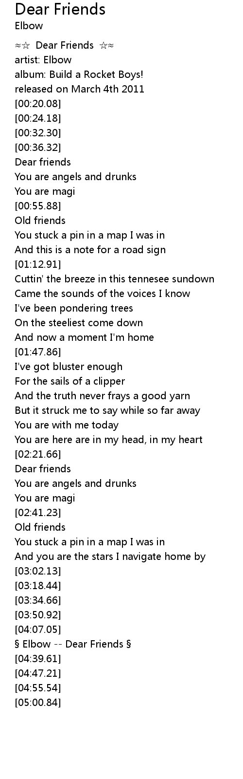 | [04:23.26] | § Elbow -- Dear Friends § |