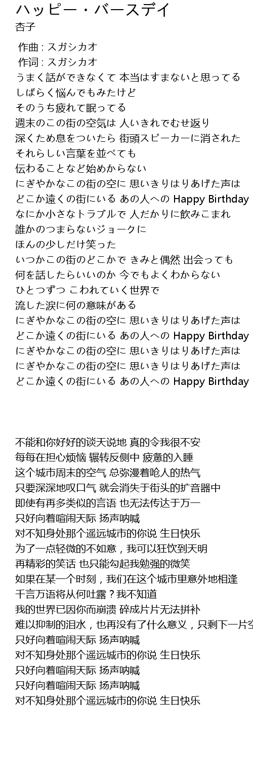 | [03:55.180] | どこか遠くの街にいる あの人への Happy Birthday |