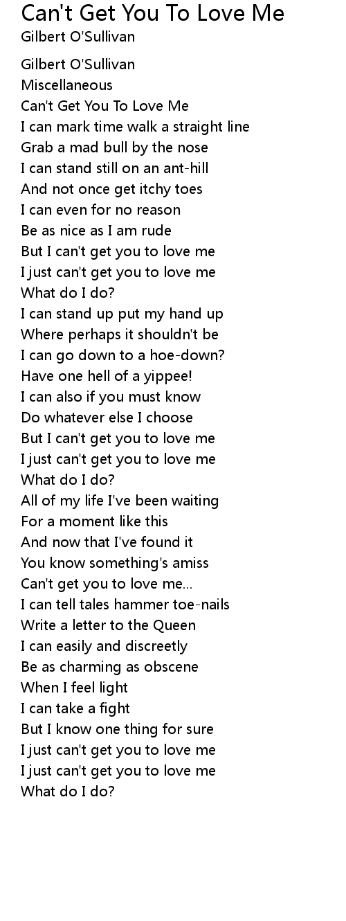 I just can't get you to love me