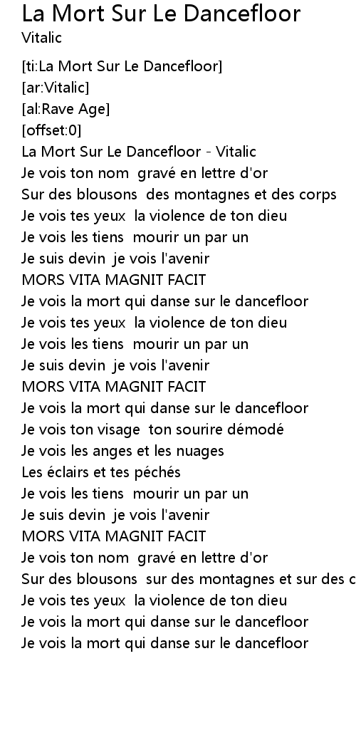 | [03:13.73] | Je vois la mort qui danse sur le dancefloor |