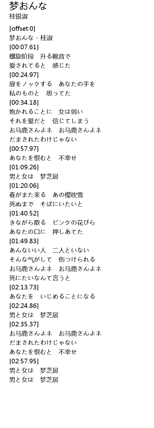 | [00:01.16] | 梦おんな - 桂淑 |