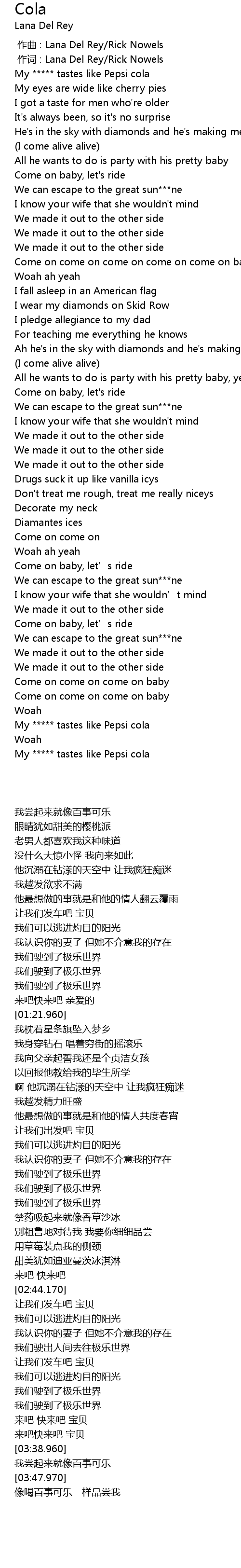 | [03:43.560] | My ***** tastes like Pepsi cola |