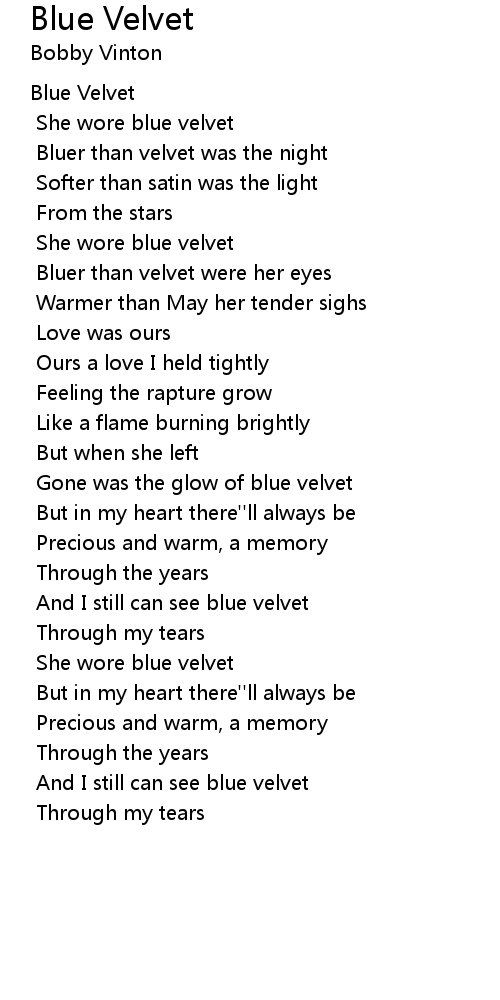 And I still can see blue velvet |