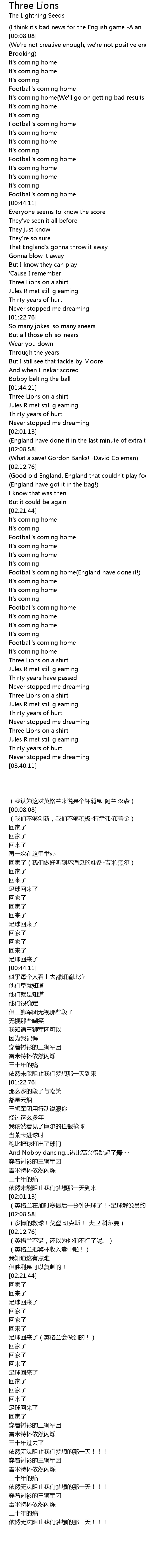 It's coming home(We'll go on getting bad results -Jimmy Hill) |