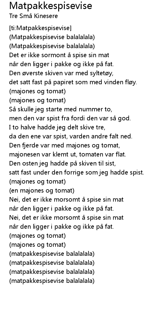 | [00:10.20] | (Matpakkespisevise balalalala) |