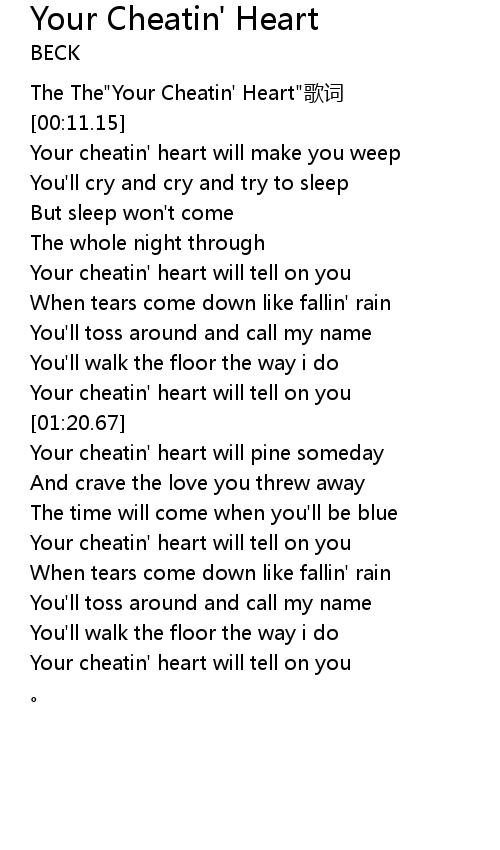 | [02:20.00] | Your cheatin' heart will tell on you |