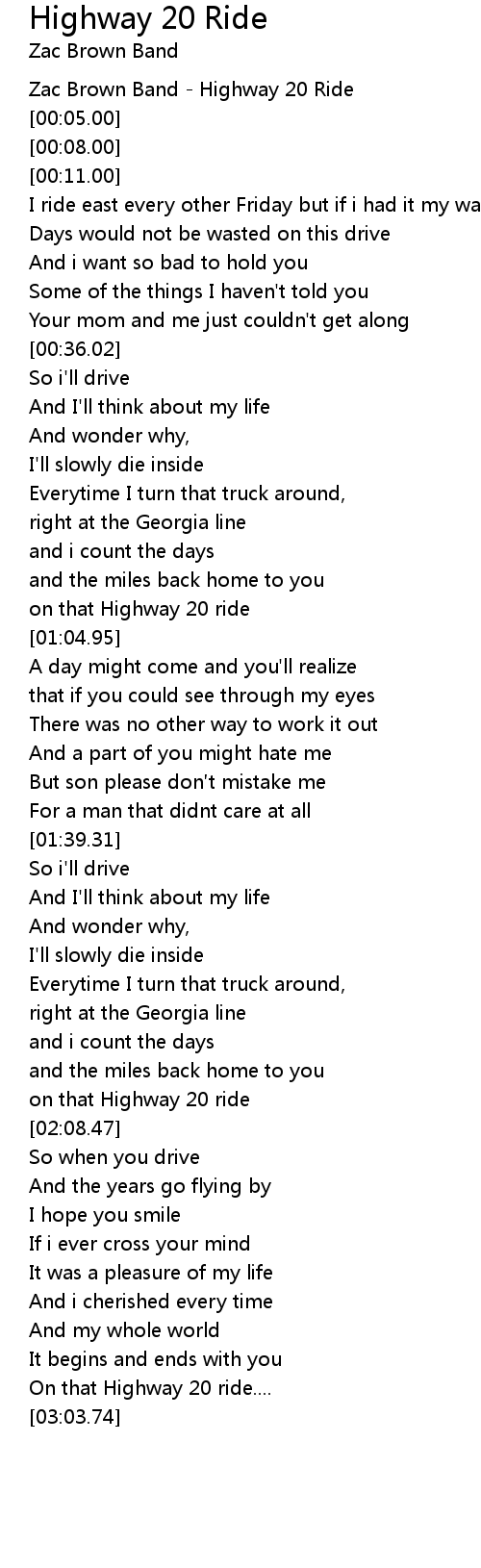 | [00:02.00] | Zac Brown Band - Highway 20 Ride |