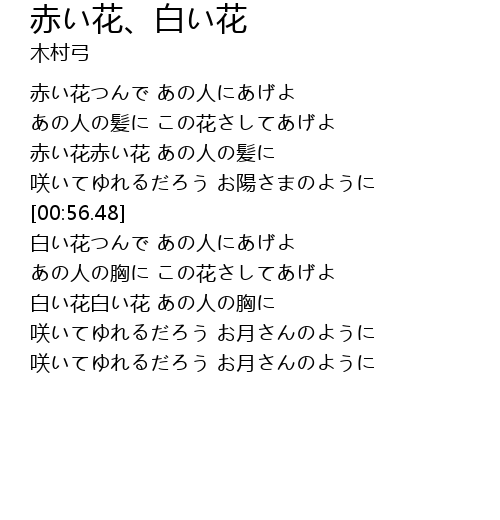 | [01:02.83] | 白い花つんで あの人にあげよ |