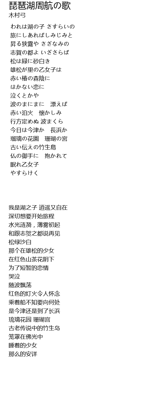 | Song | 琵琶湖周航の歌 |