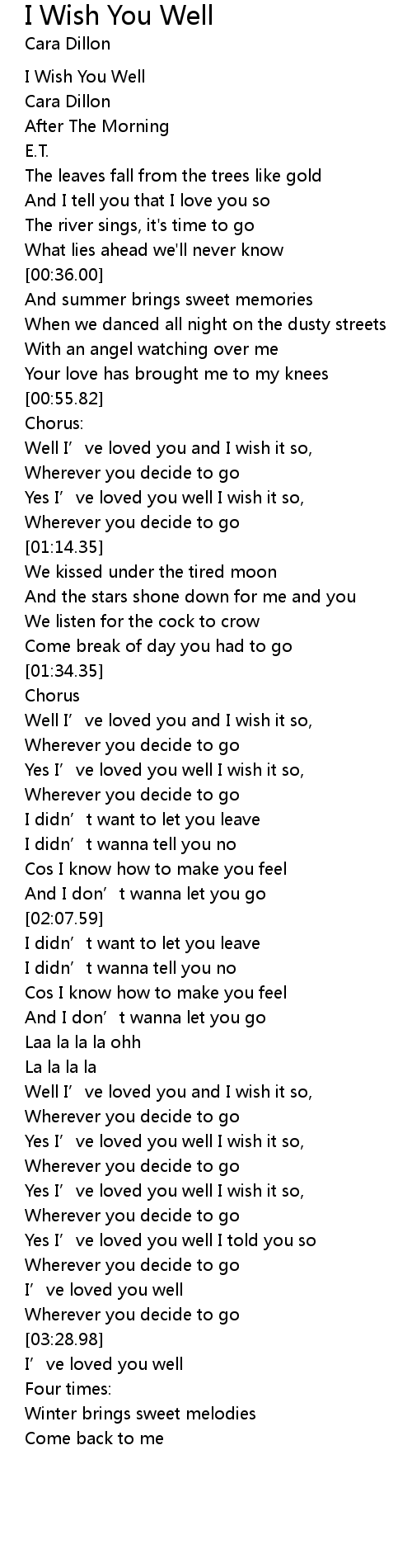 | [01:36.94] | Well I’ve loved you and I wish it so, |
