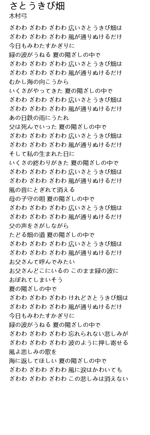| ざわわ ざわわ ざわわ 広いさとうきび畑は | |