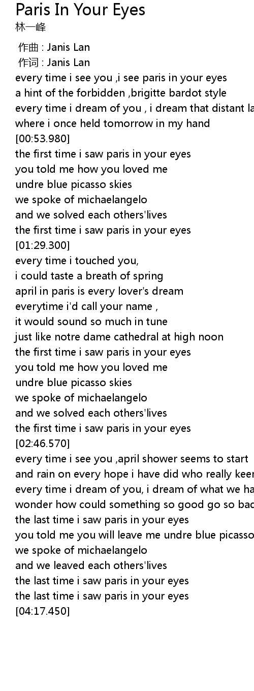 | [00:22.170] | every time i see you ,i see paris in your eyes |