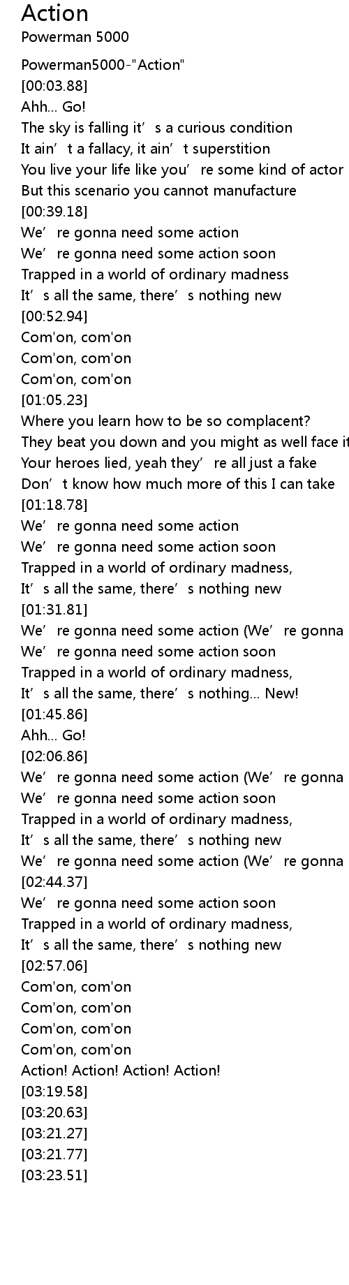 | [00:39.92] | We' re gonna need some action |