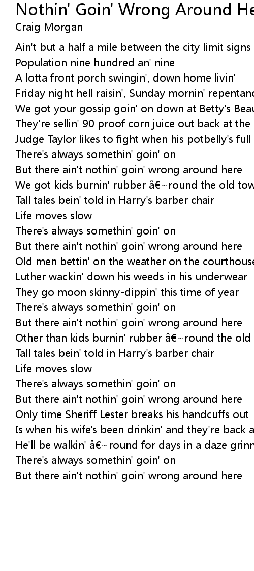 | But there ain' t nothin' goin' wrong around here |