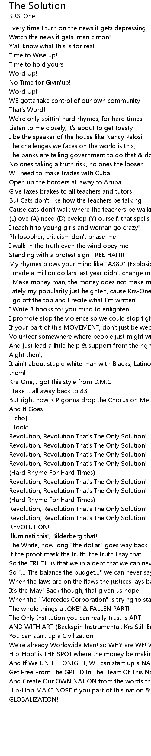 Revolution, Revolution That's The Only Solution! |