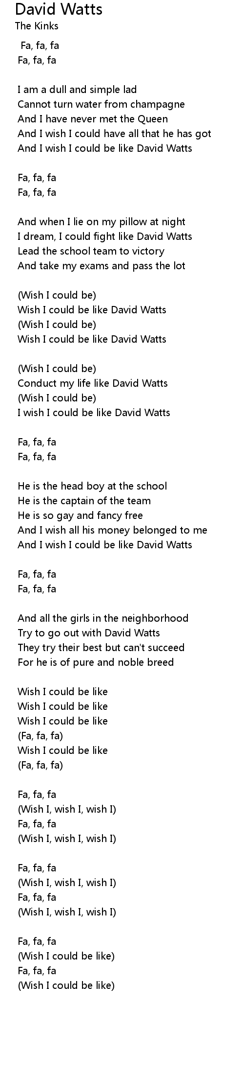 And I wish I could be like David Watts |