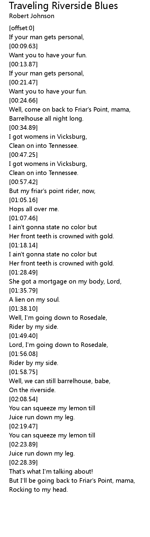 Well, come on back to Friar's Point, mama, |