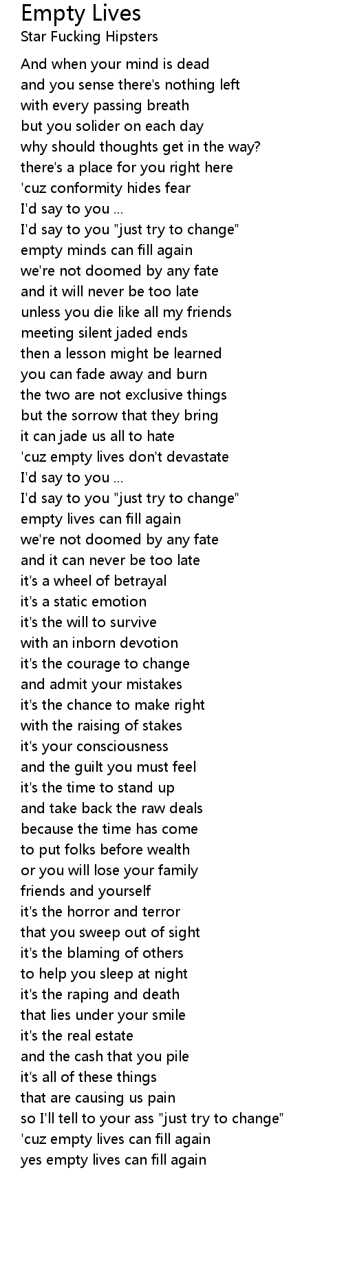 'cuz empty lives can fill again |