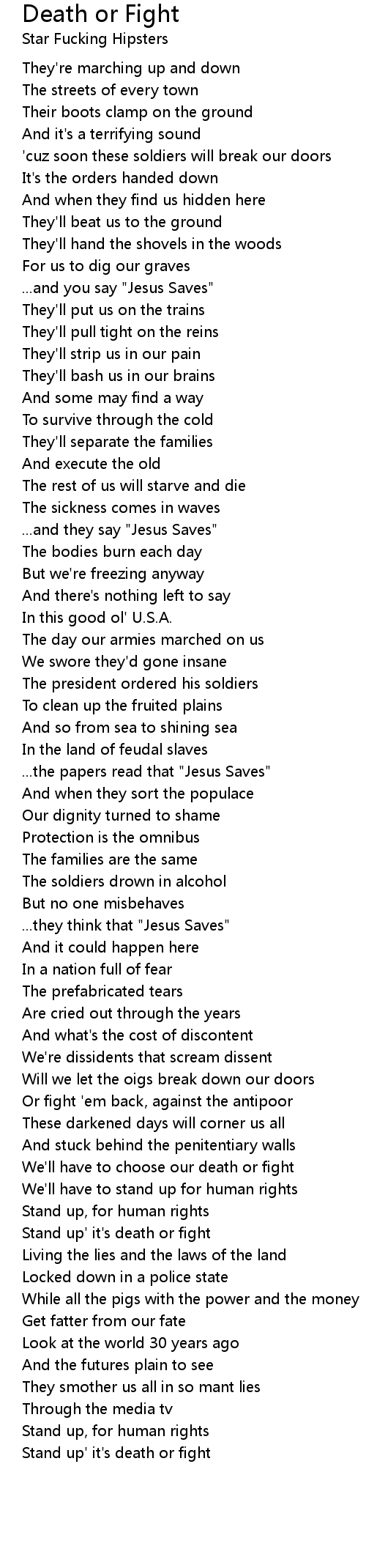 We'll have to choose our death or fight |