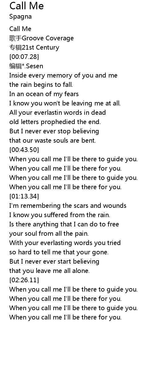 | [00:50.76] | When you call me I'll be there for you. |